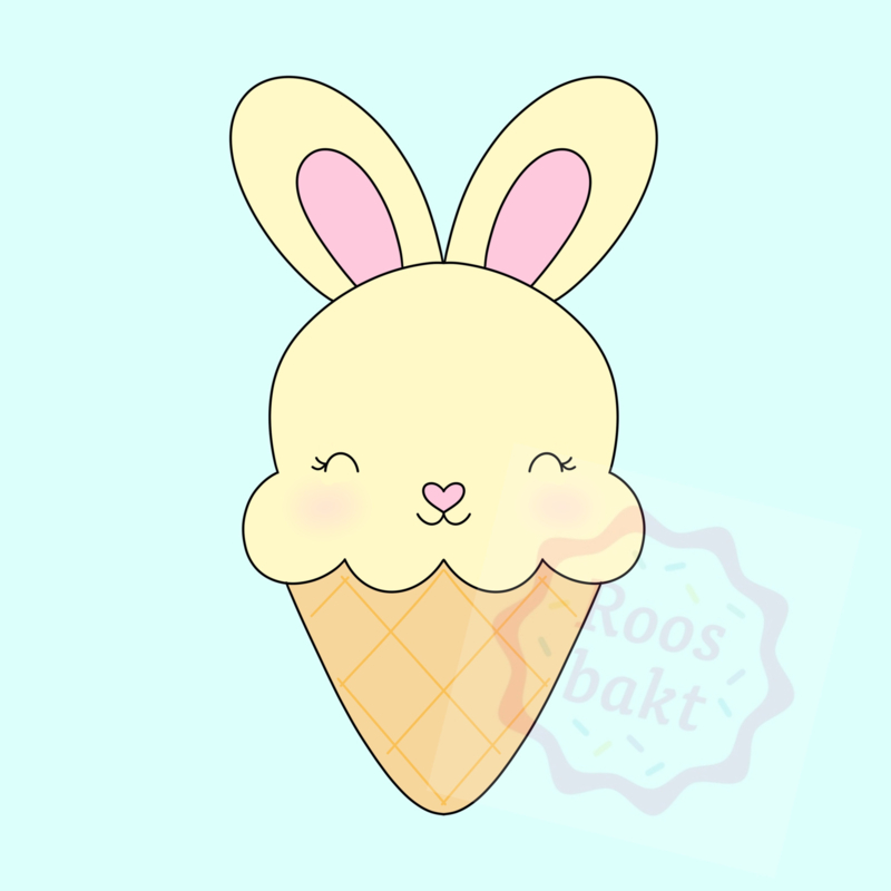 IJshoorn mollig konijnen oren uitsteker 7 of 9 of 11cmDit leuke konijntje kun je op 2 manieren decoreren. Te bestellen mét of zonder "vrolijk pasen" stencil.