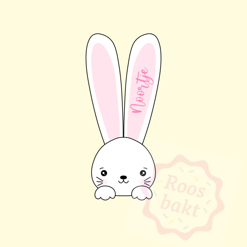 Konijn Noortje uitsteker 4, 6, 8cmOnze uitstekers zijn 3D geprint van voedselveilig en biologisch afbreekbaar materiaal. Ze kunnen afgewassen worden met handwarm water en een sopje.
