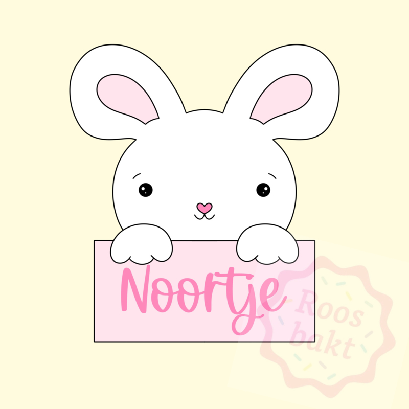 Konijn tekstbord 2 uitsteker 6, 8 of 10cmOnze uitstekers zijn 3D geprint van voedselveilig en biologisch afbreekbaar materiaal. Ze kunnen afgewassen worden met handwarm water en een sopje.