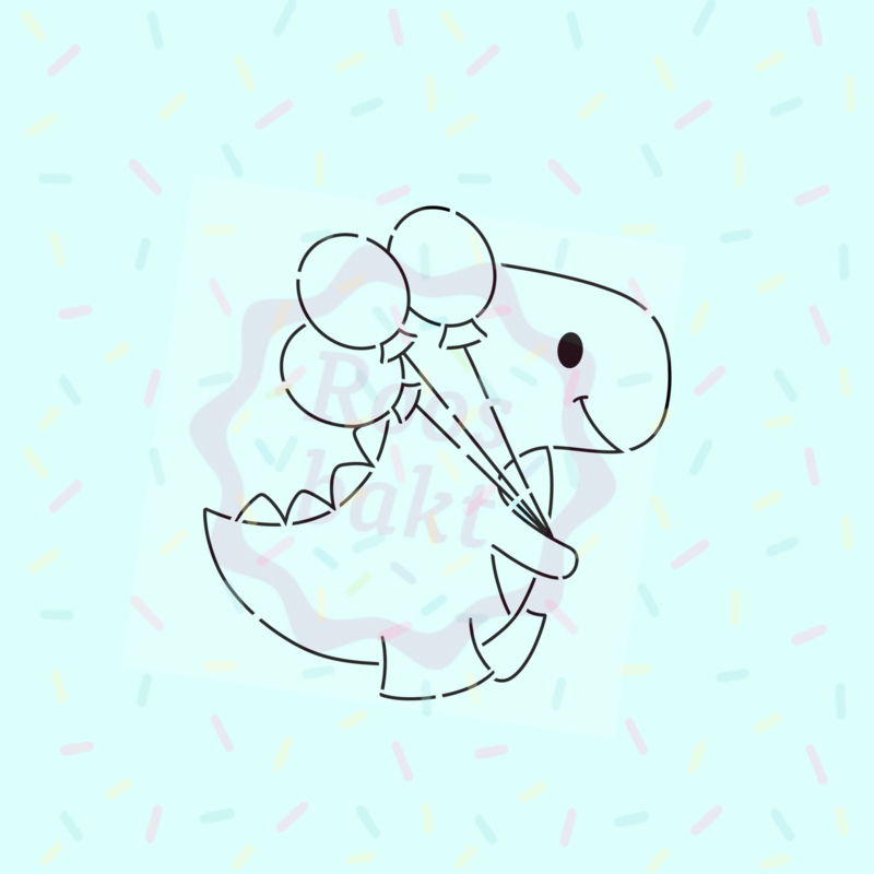 PYO Stencil dino met ballonnen (8,5cm)Afmetingen stencil: 14x14cm